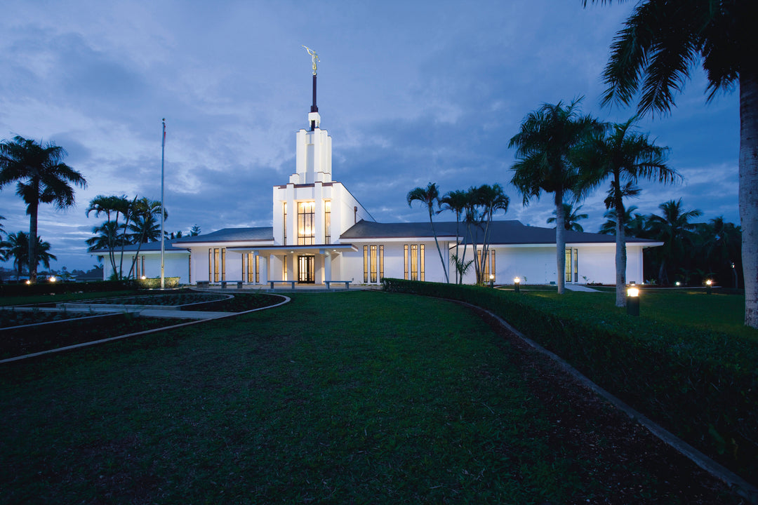 Nukualofa Tonga Temple Patterned Neck Tie for Elders (Blue)