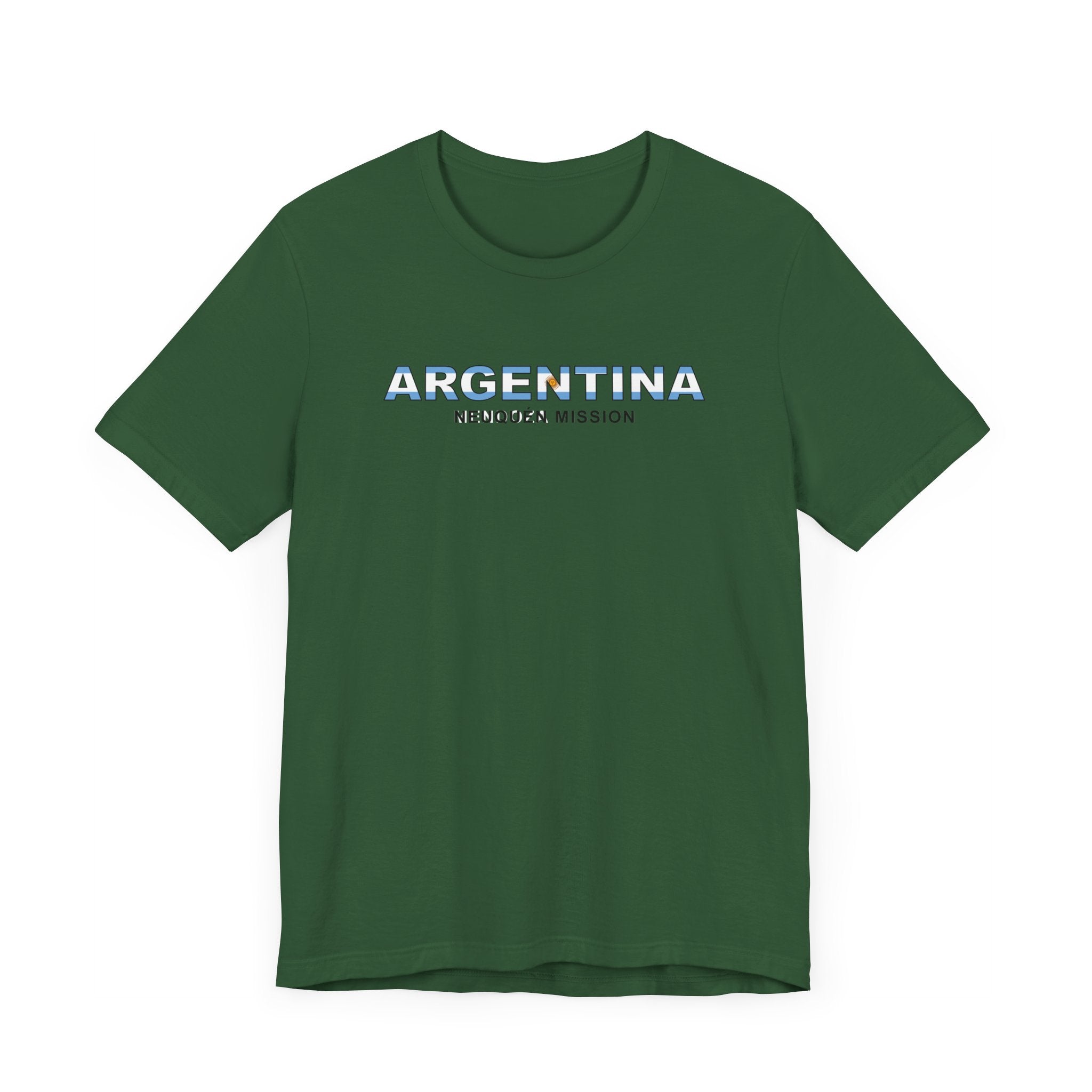 What sets this t-shirt apart is its unique design element: it features the flag of Argentina neatly superimposed over the Argentina Neuquen Mission's name. This striking visual not only adds a vibrant splash of color to the design but also symbolizes the missions unity and commitment to the regions community. The flag's intricate details are carefully rendered to ensure clarity and impact, making this t-shirt a standout piece in any wardrobe.