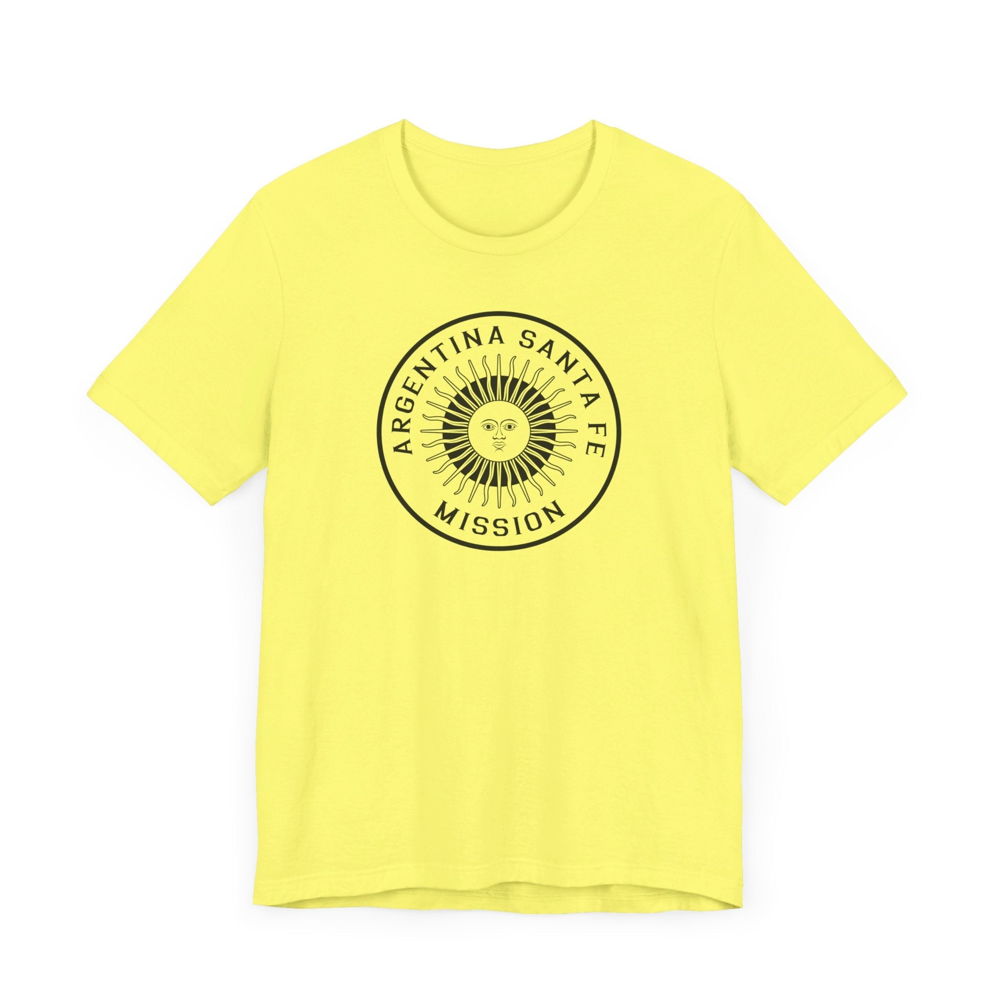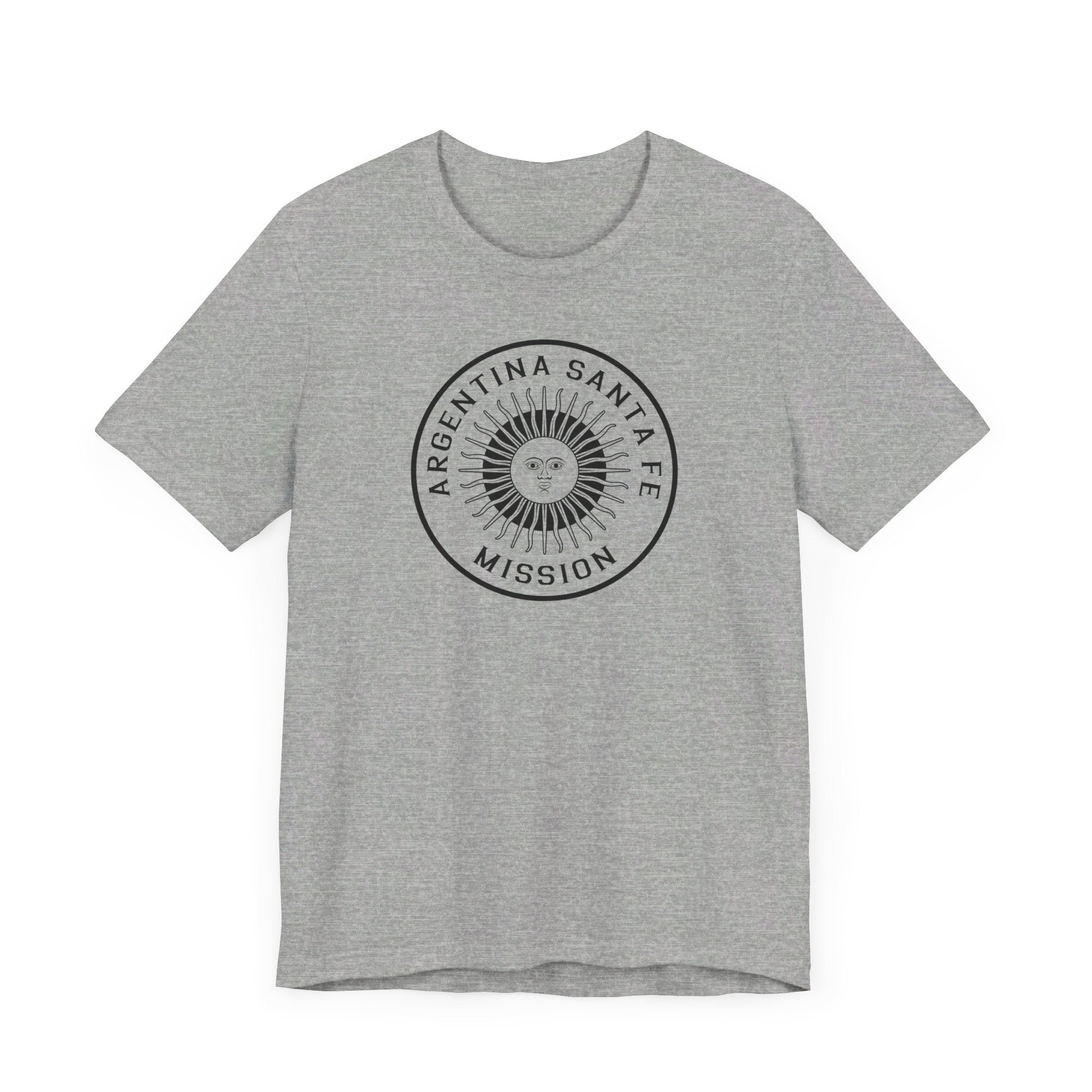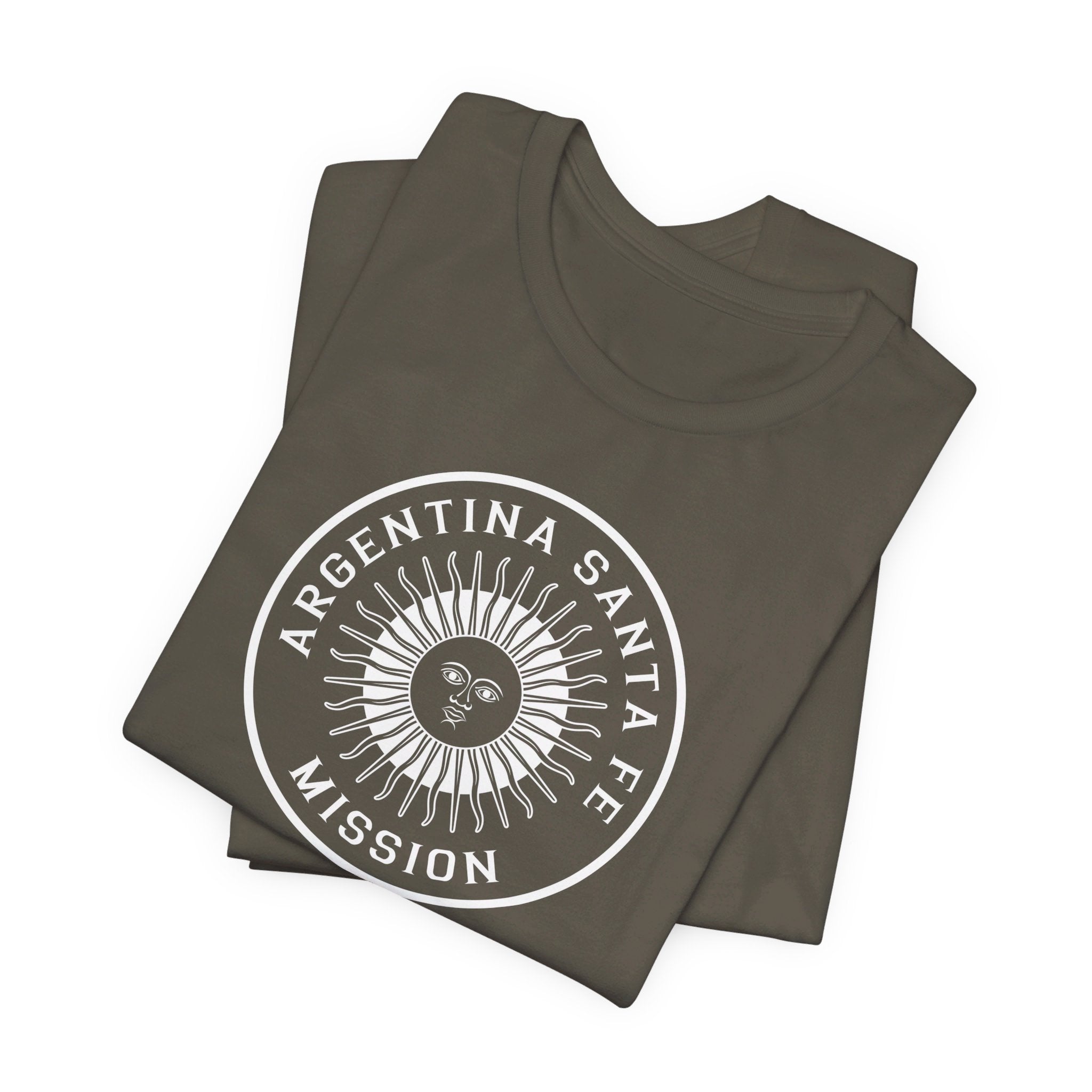- Bold Monochrome Logo: The centerpiece of this T-shirt is an original logo crafted by our team for the Argentina Santa Fe Mission, that considers emblems and symbology of the regions served in the mission.