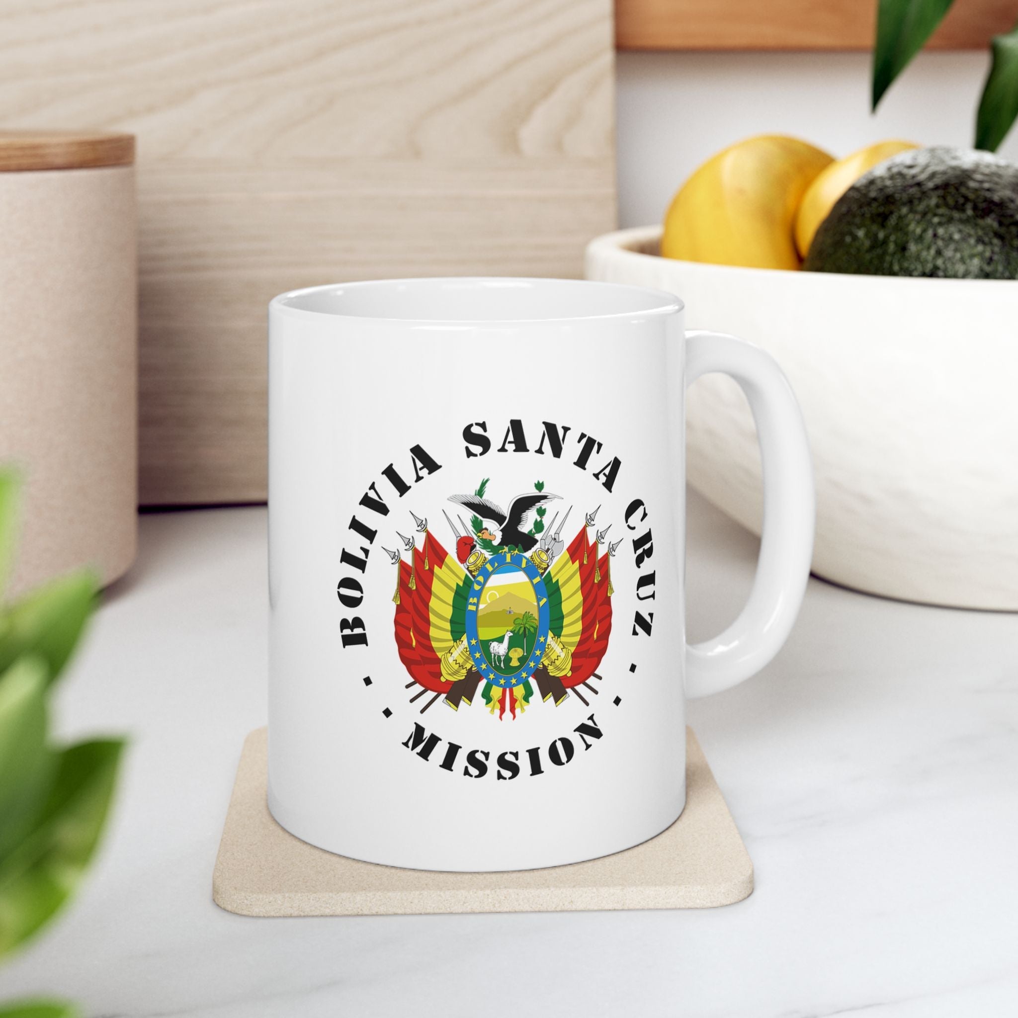 Warm your missionary's heart with our Bolivia Santa Cruz Mission ceramic mug. Filled with hot coco, it will remind them of the home while so far away from family during the most wonderful time of the year. Of course it's BPA and Lead-free, microwave & dishwasher-safe, and made of white, durable ceramic in 11-ounce and 15-ounce sizes.