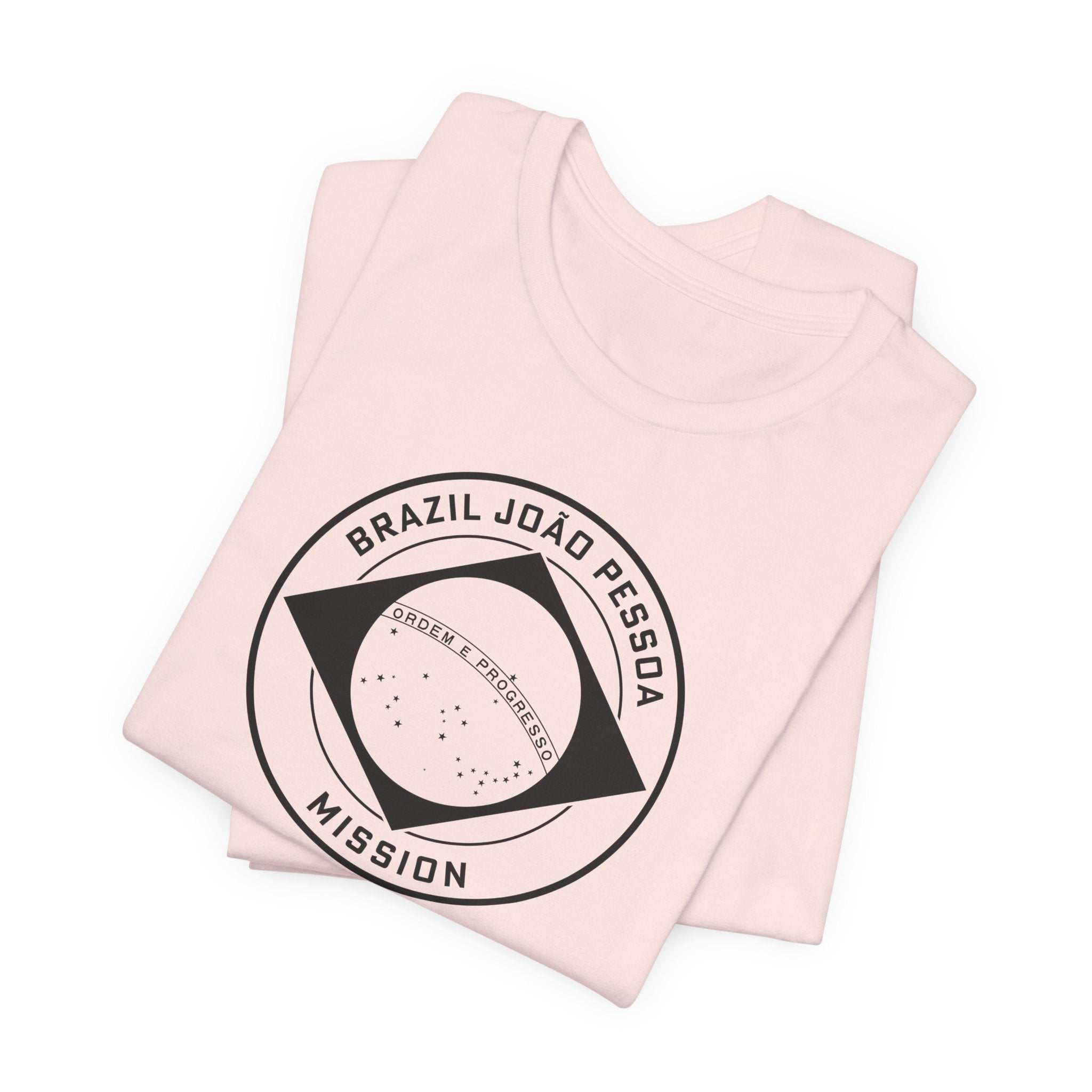 - Bold Monochrome Logo: The centerpiece of this T-shirt is an original logo crafted by our team for the Brazil Joao Pessoa Mission, that considers emblems and symbology of the regions served in the mission.