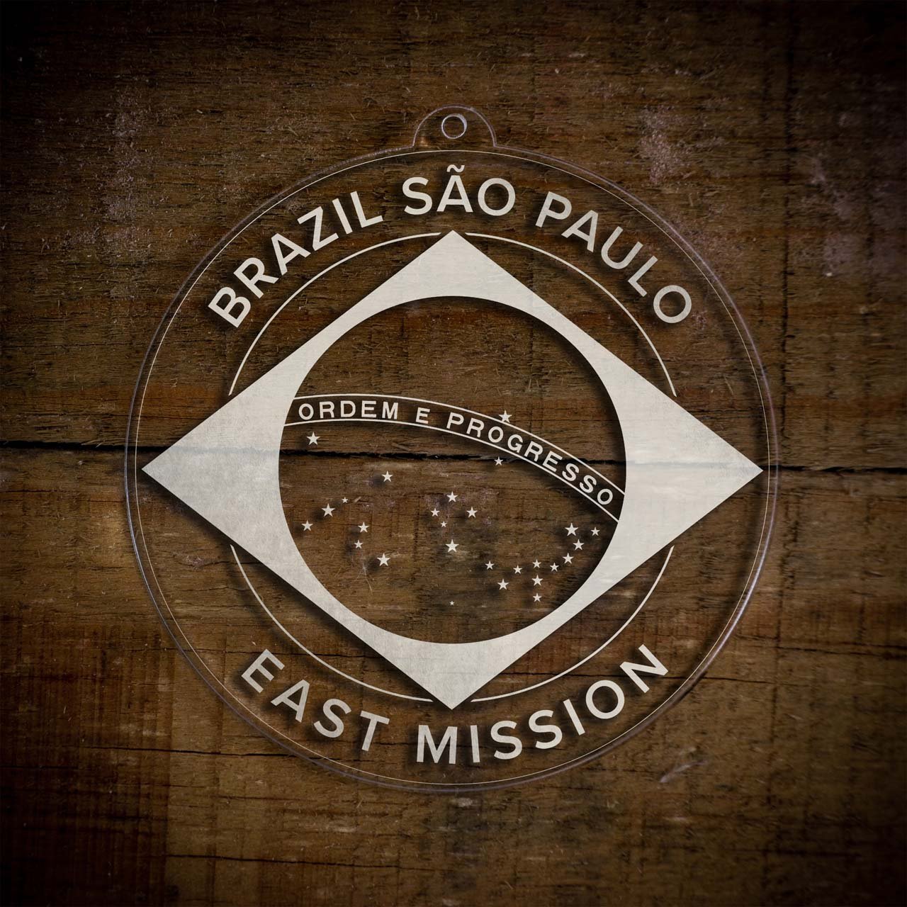 The design on this ornament is inspired by the Brazilian Flag and depicts a starry sky spanned by a curved band inscribed with the national motto "Ordem e Progresso" ("Order and Progress" in Portuguese). Each of the stars represents a Brazilian state and the Federal District, their size is proportion relative to its geographic size. The 27 stars compose nine constellations that are present in the sky of Rio de Janeiro in winter, the capital of the country.