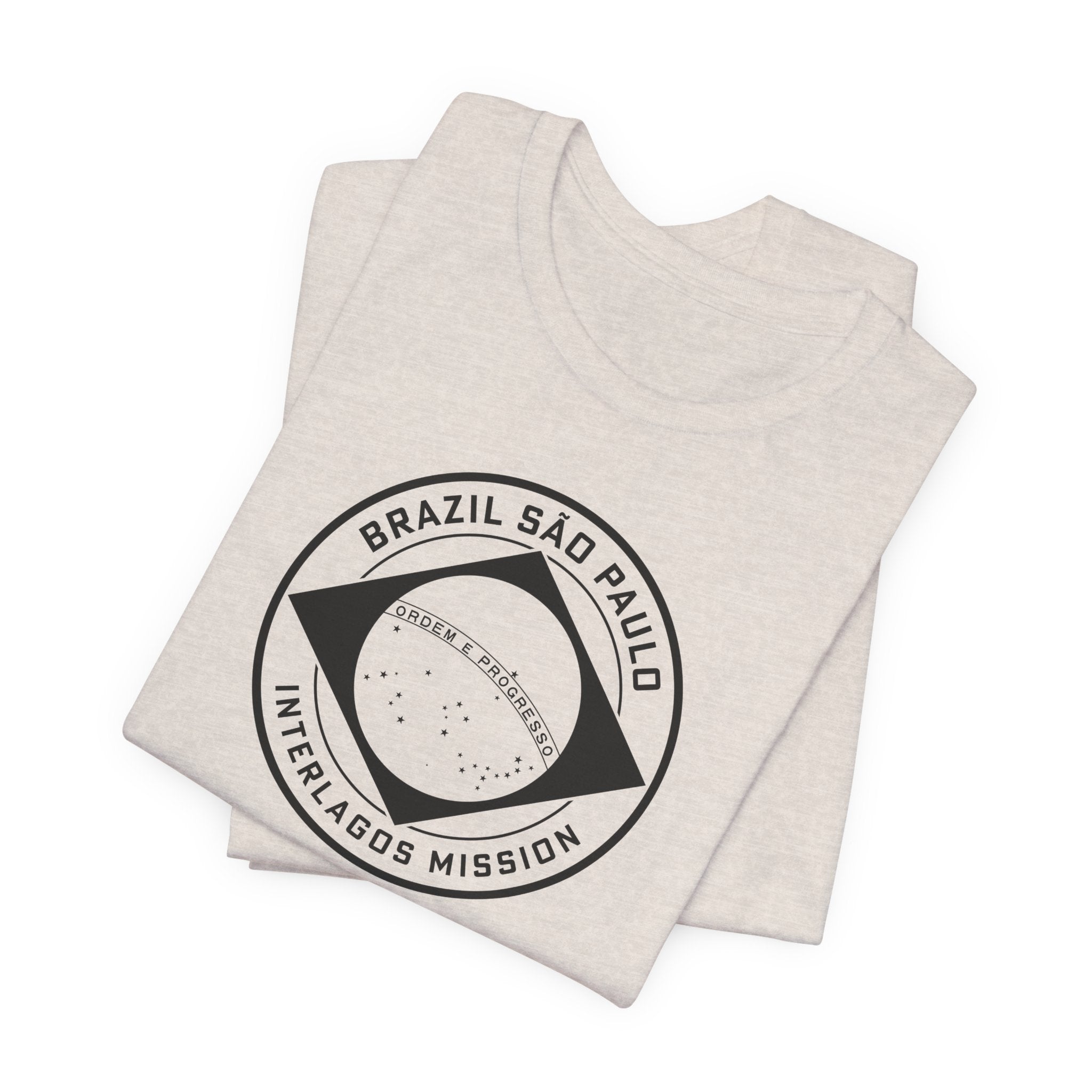 • Bold Monochrome Logo: The centerpiece of this T-shirt is an original logo crafted by our team for the Brazil Sao Paulo Interlagos Mission, that considers emblems and symbology of the regions served in the mission.