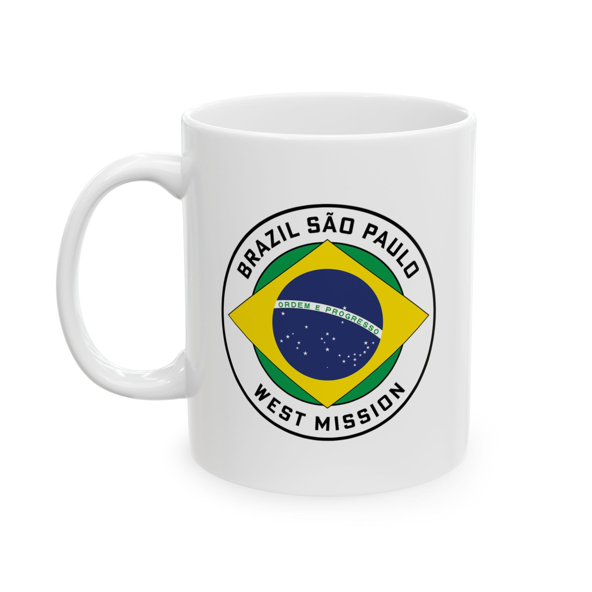 Brazil Sao Paulo West Mission Circular Flag White Ceramic Mug
