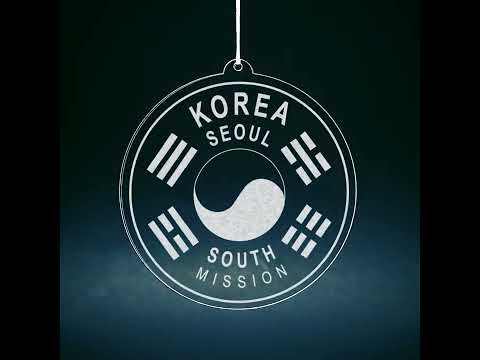 The design on this ornament is inspired by the Flag of South Korea, which contains a Taegeuk in its center and four trigrams surrounding it.