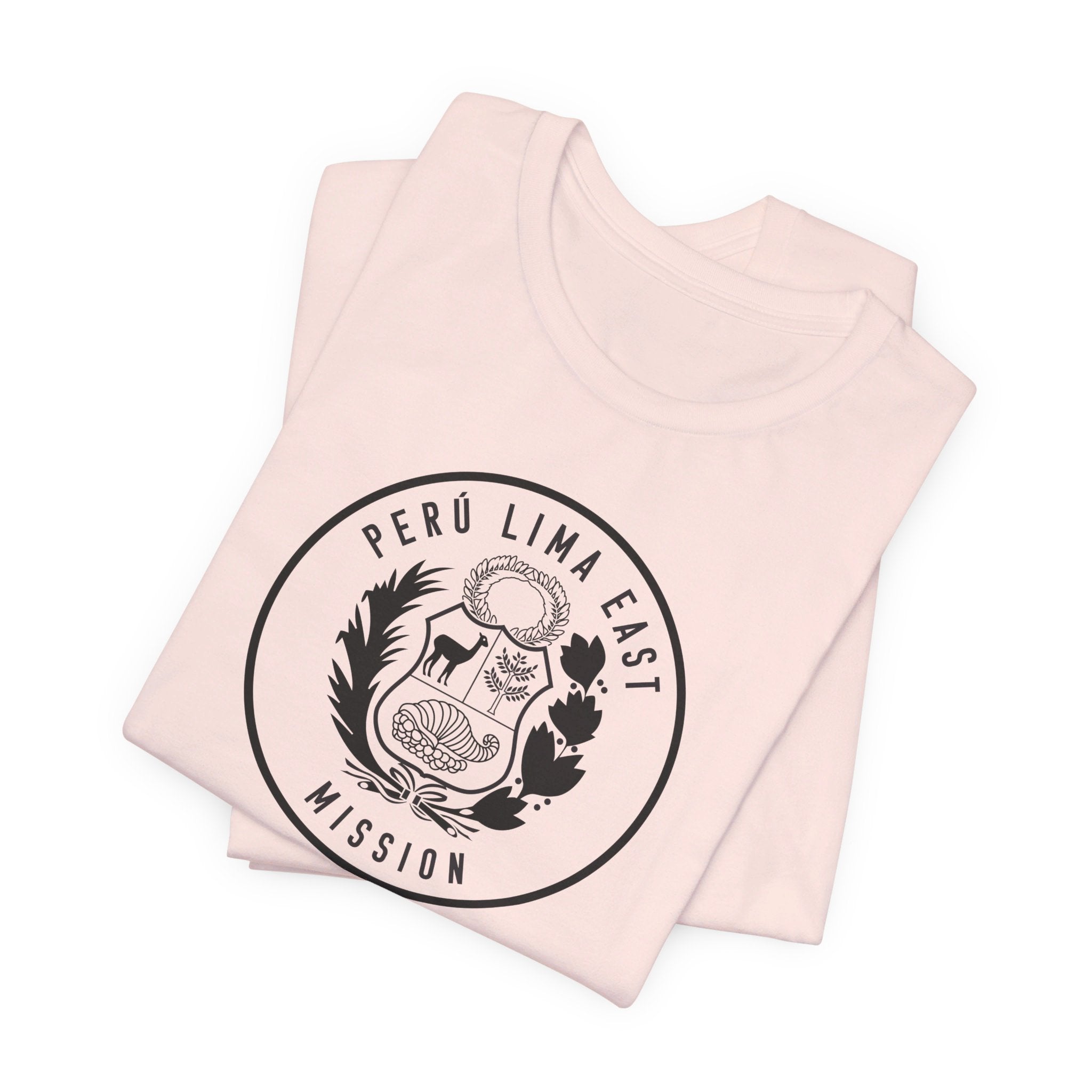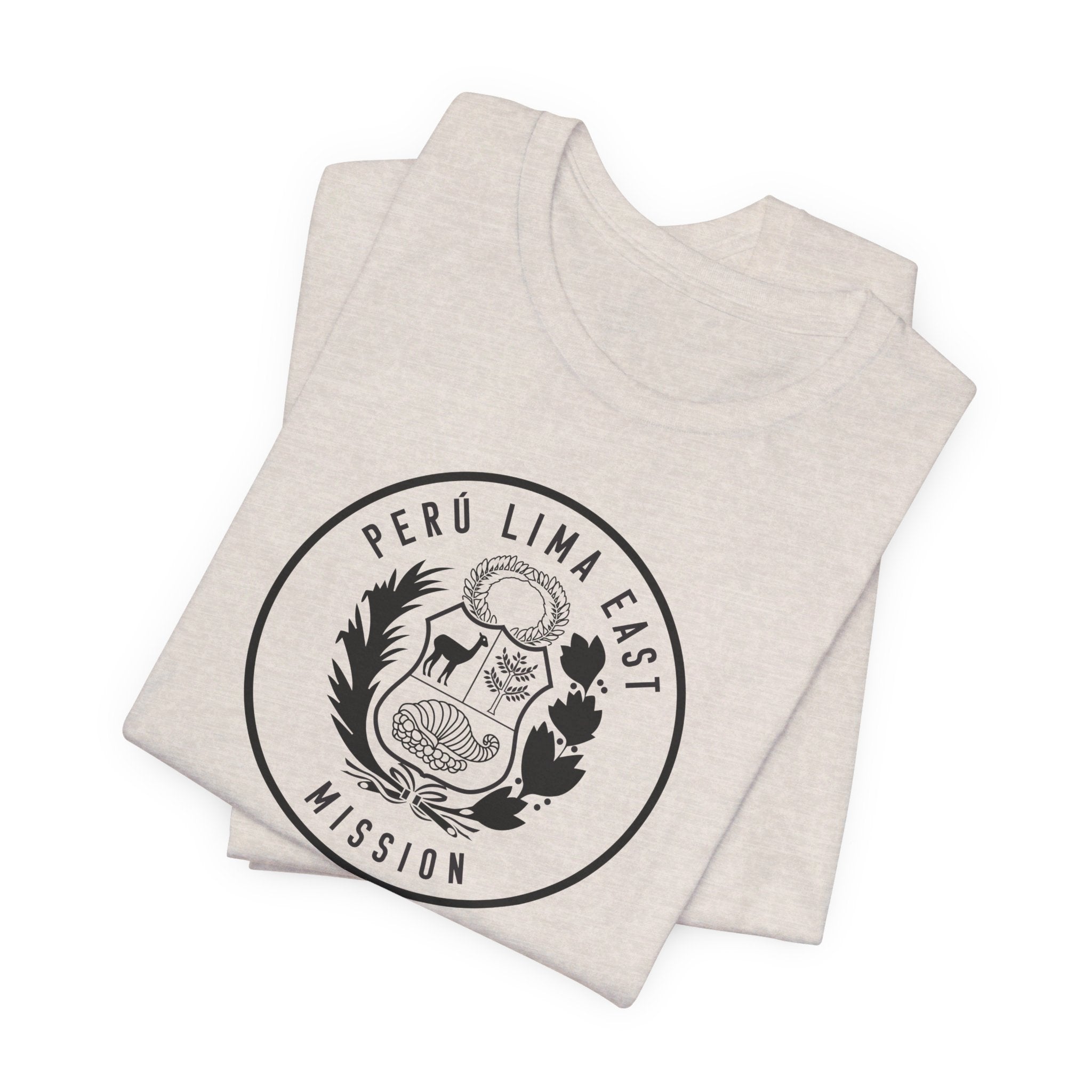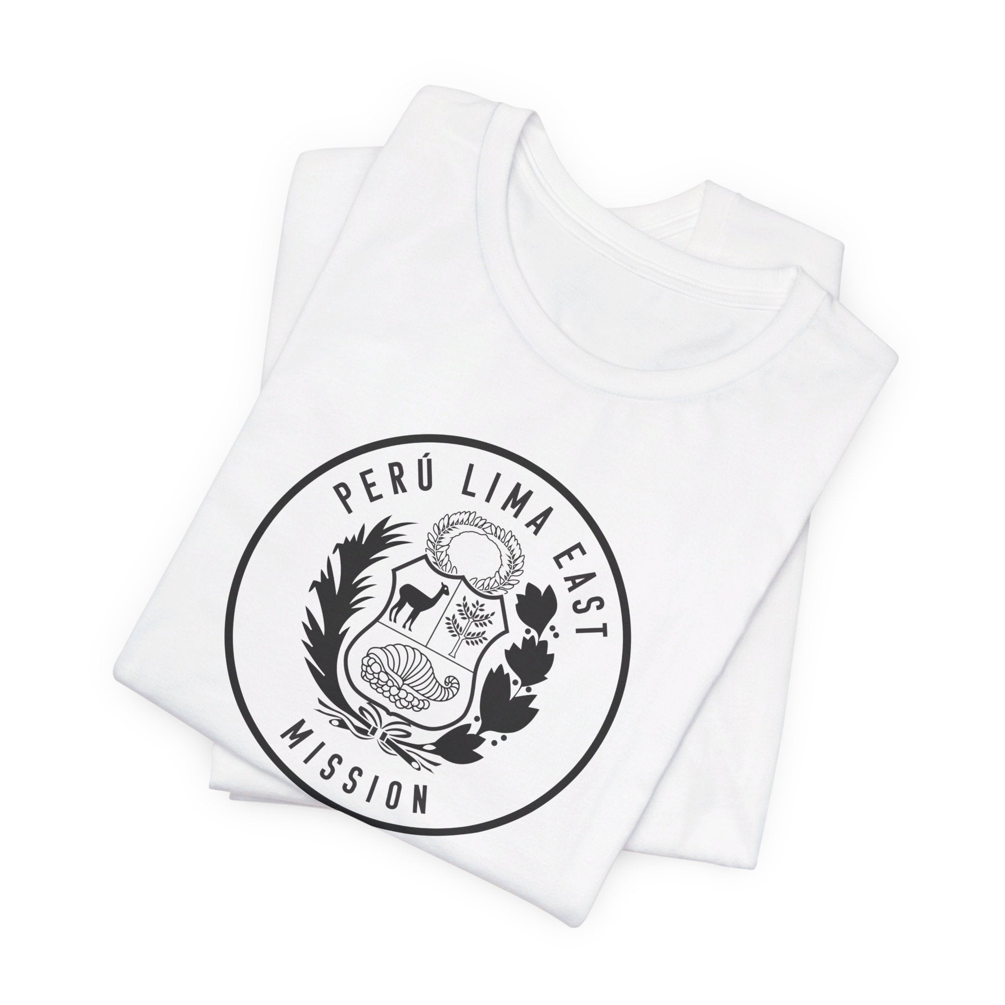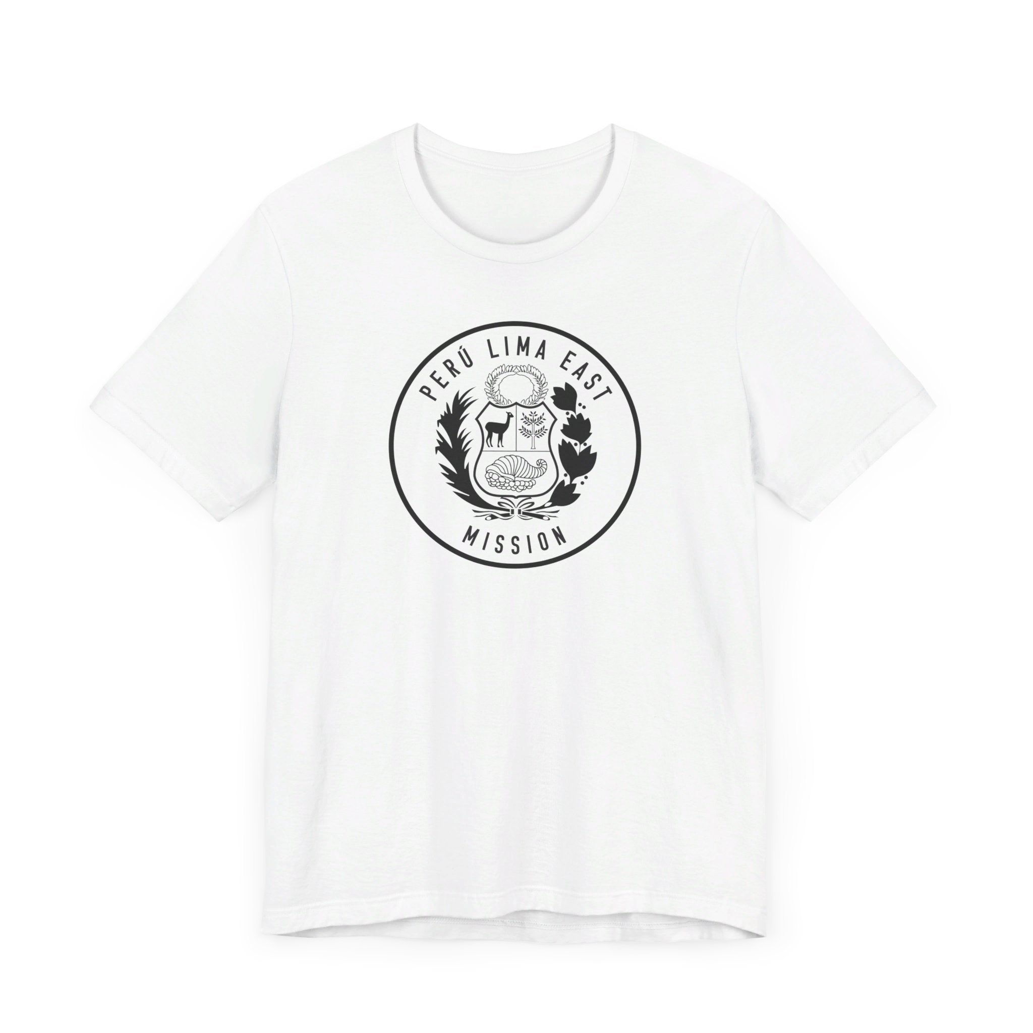 • Bold Monochrome Logo: The centerpiece of this T-shirt is an original logo crafted by our team for the Peru Lima East Mission, that considers emblems and symbology of the regions served in the mission.