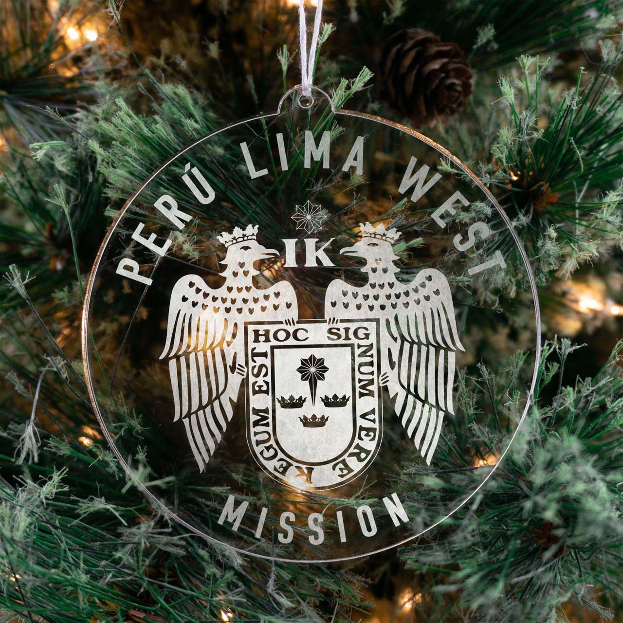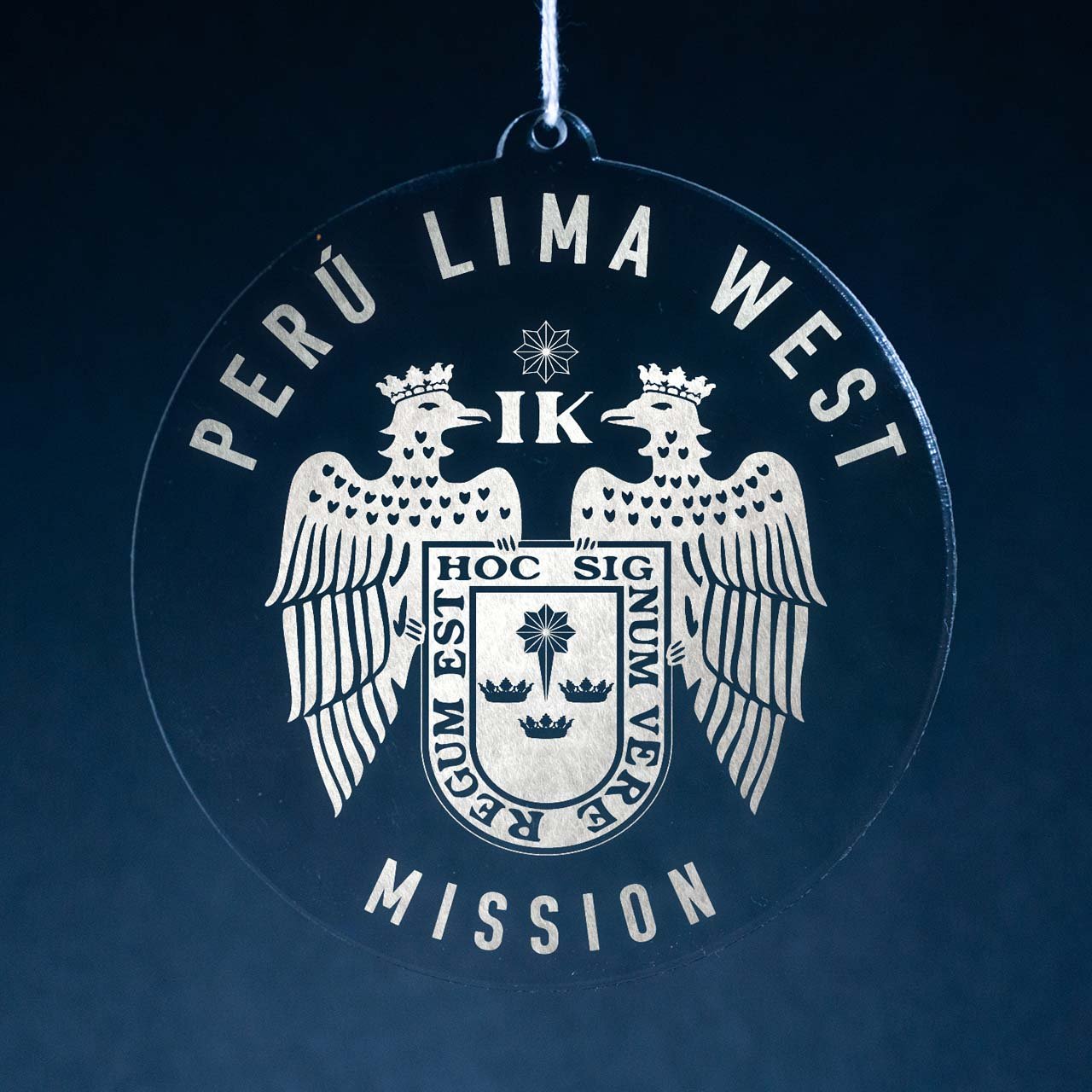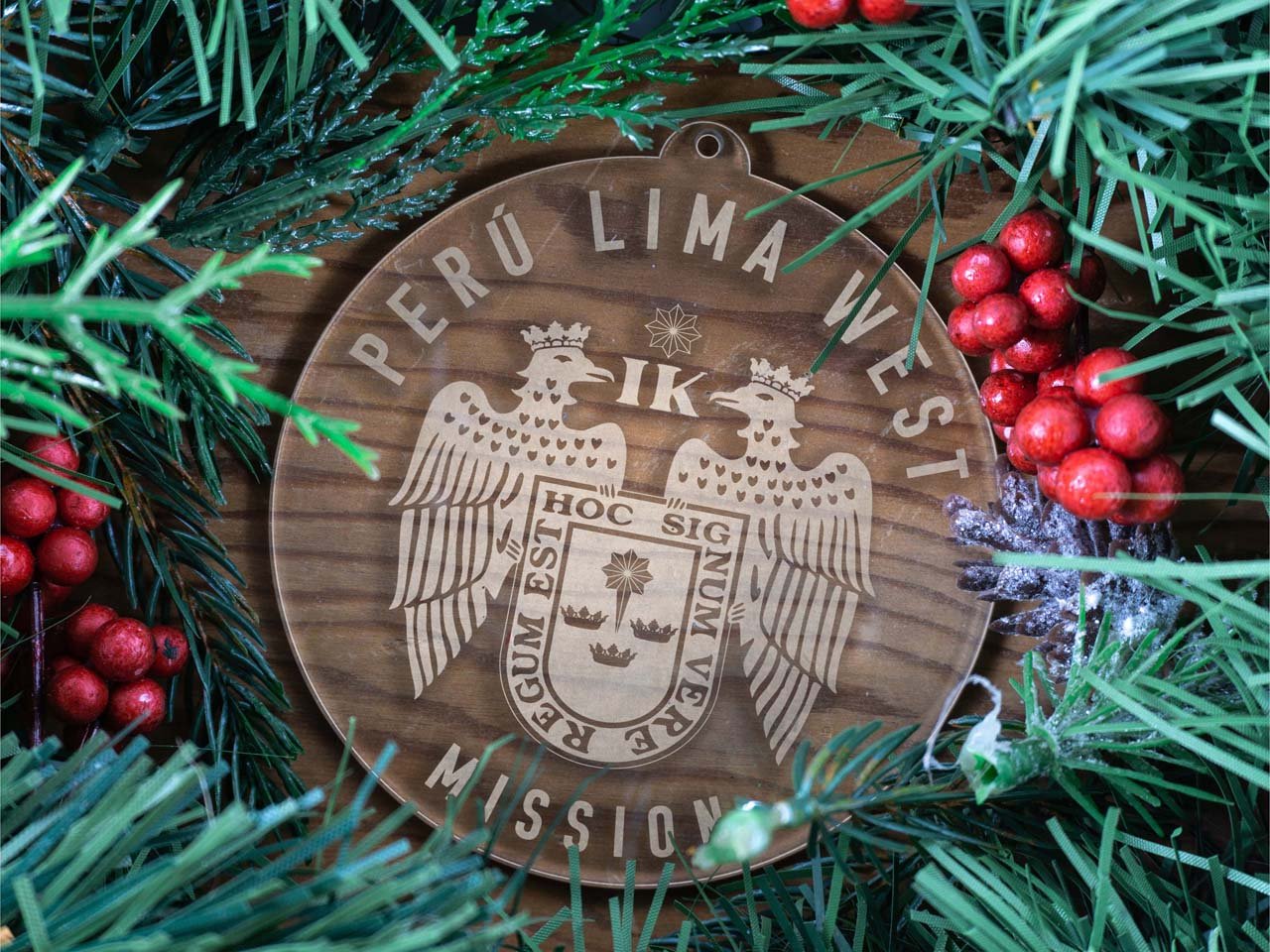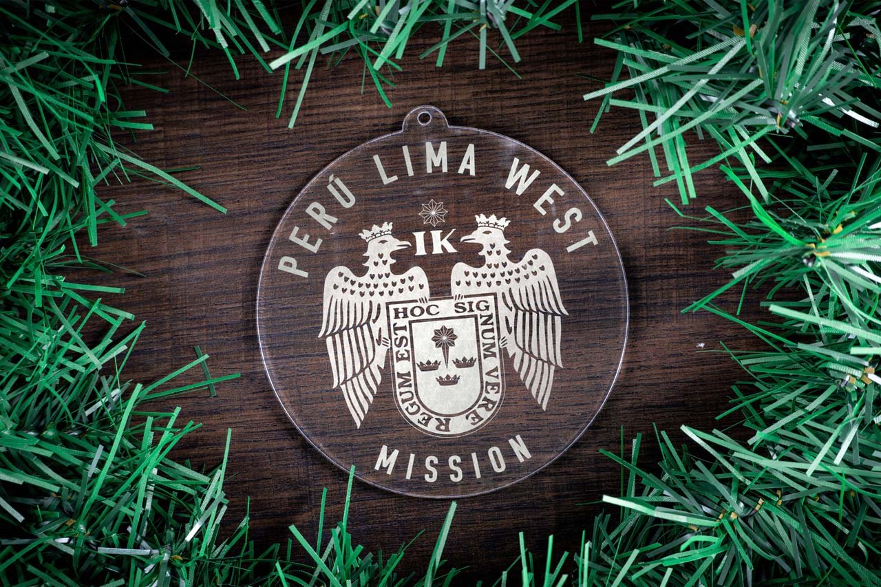 Made out of a lightweight and very durable transparent acrylic, these ornaments will not weigh your tree down and can definitely withstand being dropped by the little ones should they get too curious around the tree. The acrylic is cut into a 4 inch circle and then laser etched with the name of the mission and graphics inspired by the region served.