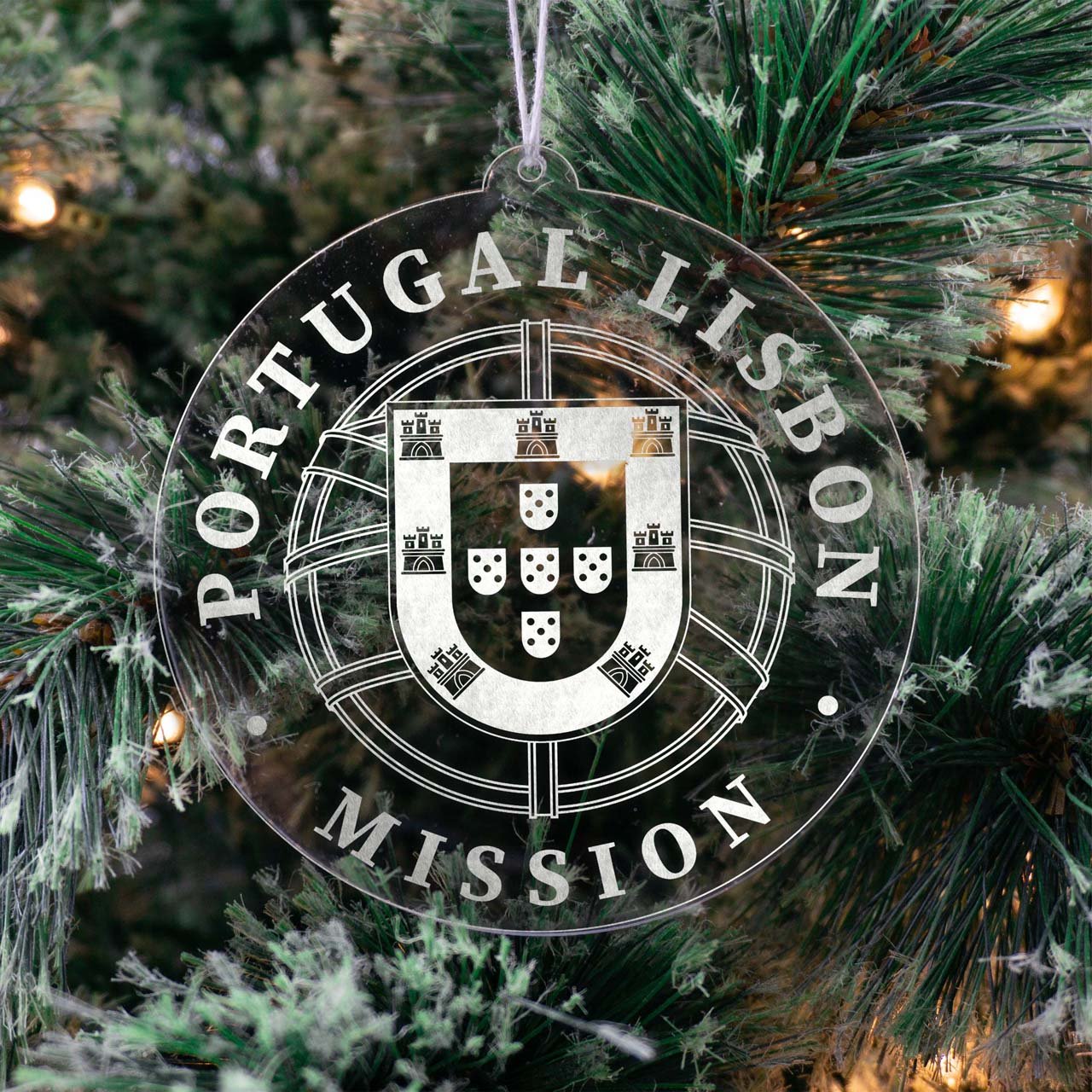 Made out of a lightweight and very durable transparent acrylic, these ornaments will not weigh your tree down and can definitely withstand being dropped by the little ones should they get too curious around the tree. The acrylic is cut into a 4 inch circle and then laser etched with the name of the mission and graphics inspired by the region served.