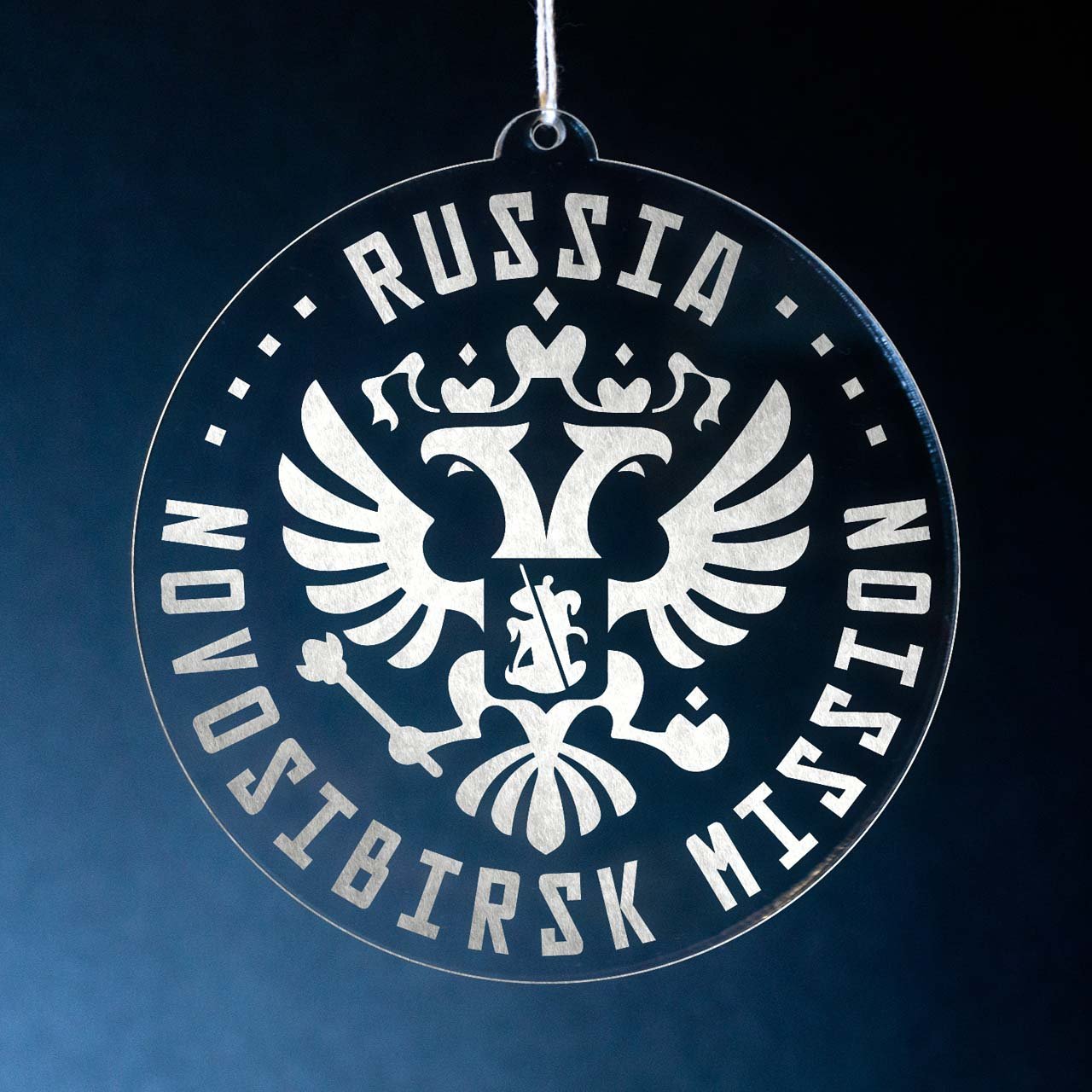 Made out of a lightweight and very durable transparent acrylic, these ornaments will not weigh your tree down and can definitely withstand being dropped by the little ones should they get too curious around the tree. The acrylic is cut into a 4 inch circle and then laser etched with the name of the mission and graphics inspired by the region served.