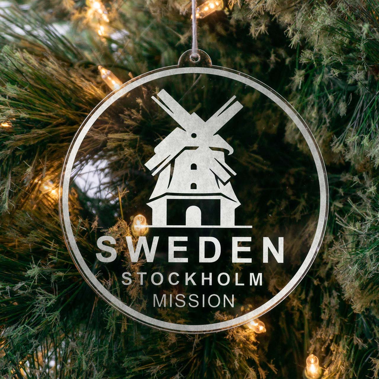 Made out of a lightweight and very durable transparent acrylic, these ornaments will not weigh your tree down and can definitely withstand being dropped by the little ones should they get too curious around the tree. The acrylic is cut into a 4 inch circle and then laser etched with the name of the mission and graphics inspired by the region served.