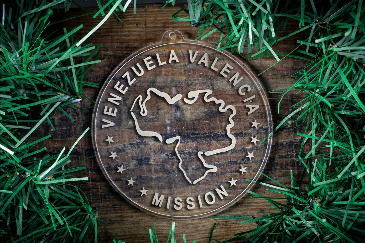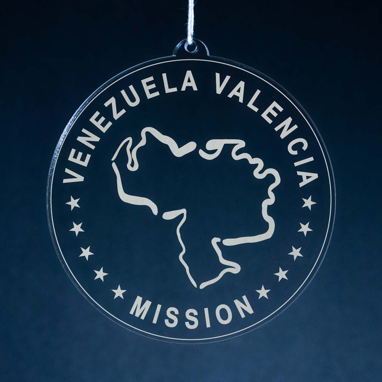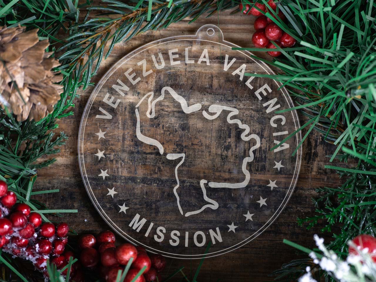 Made out of a lightweight and very durable transparent acrylic, these ornaments will not weigh your tree down and can definitely withstand being dropped by the little ones should they get too curious around the tree. The acrylic is cut into a 4 inch circle and then laser etched with the name of the mission and graphics inspired by the region served.